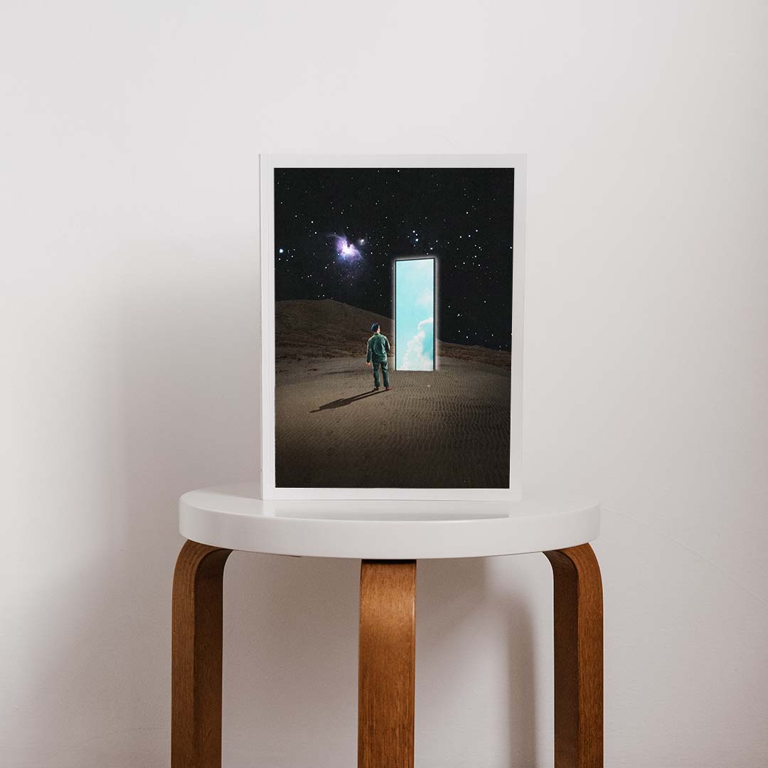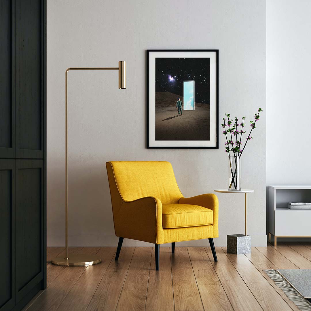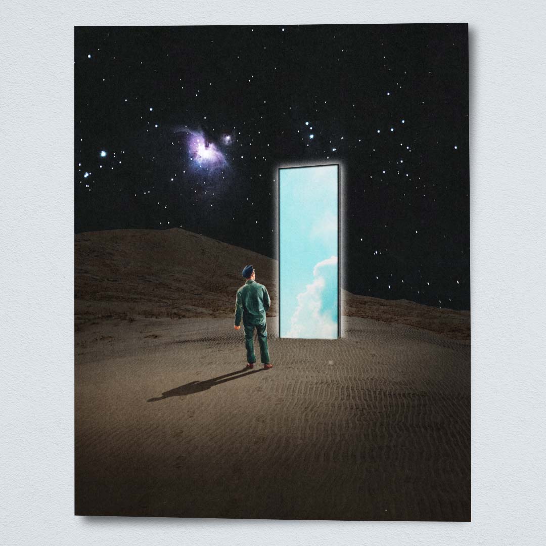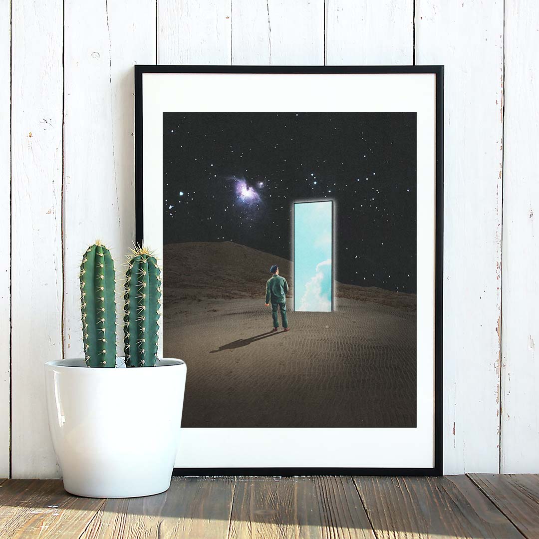 Bring out the best of any room with this unique retro-future collage art print. Perfect for your home or at the office.